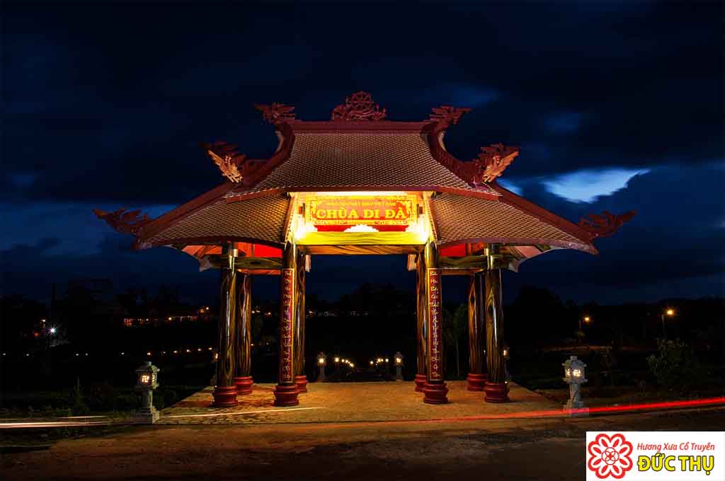 Hình ảnh chụp từ phía rước chùa di đà vào tối rất thơ mộng
