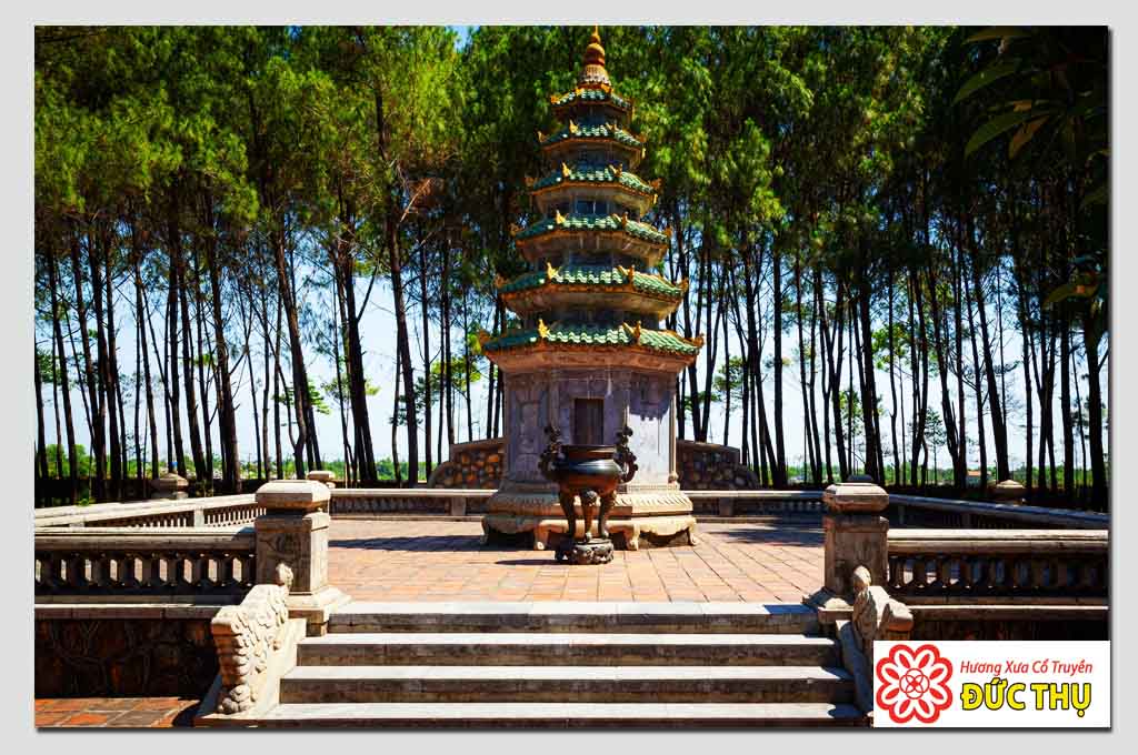 Hình ảnh toa tháp trong khuôn viên chùa thiên mu đẹp và cổ kính