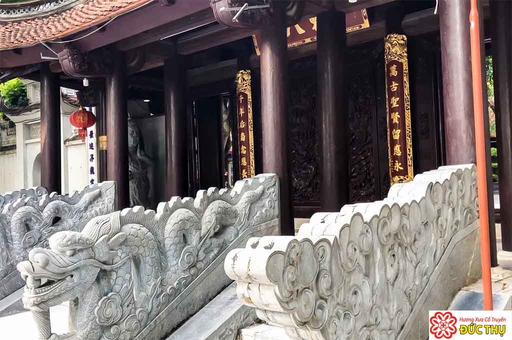 Phía bên phải có treo tấm bảng ghi bài thơ nổi tiếng Nam quốc sơn hà: