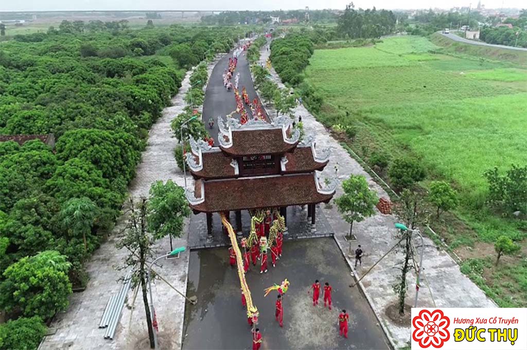 Hình ảnh chụp từ trên cao đường vào đền quan lớn đệ tam đền lảnh giang hà nam