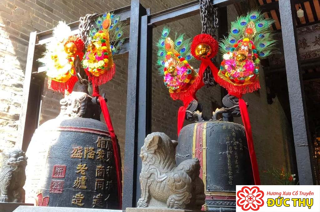 Hình ảnh đôi chuông được đúc bằng đồng nguyên khối tại Nhị Phủ Miếu