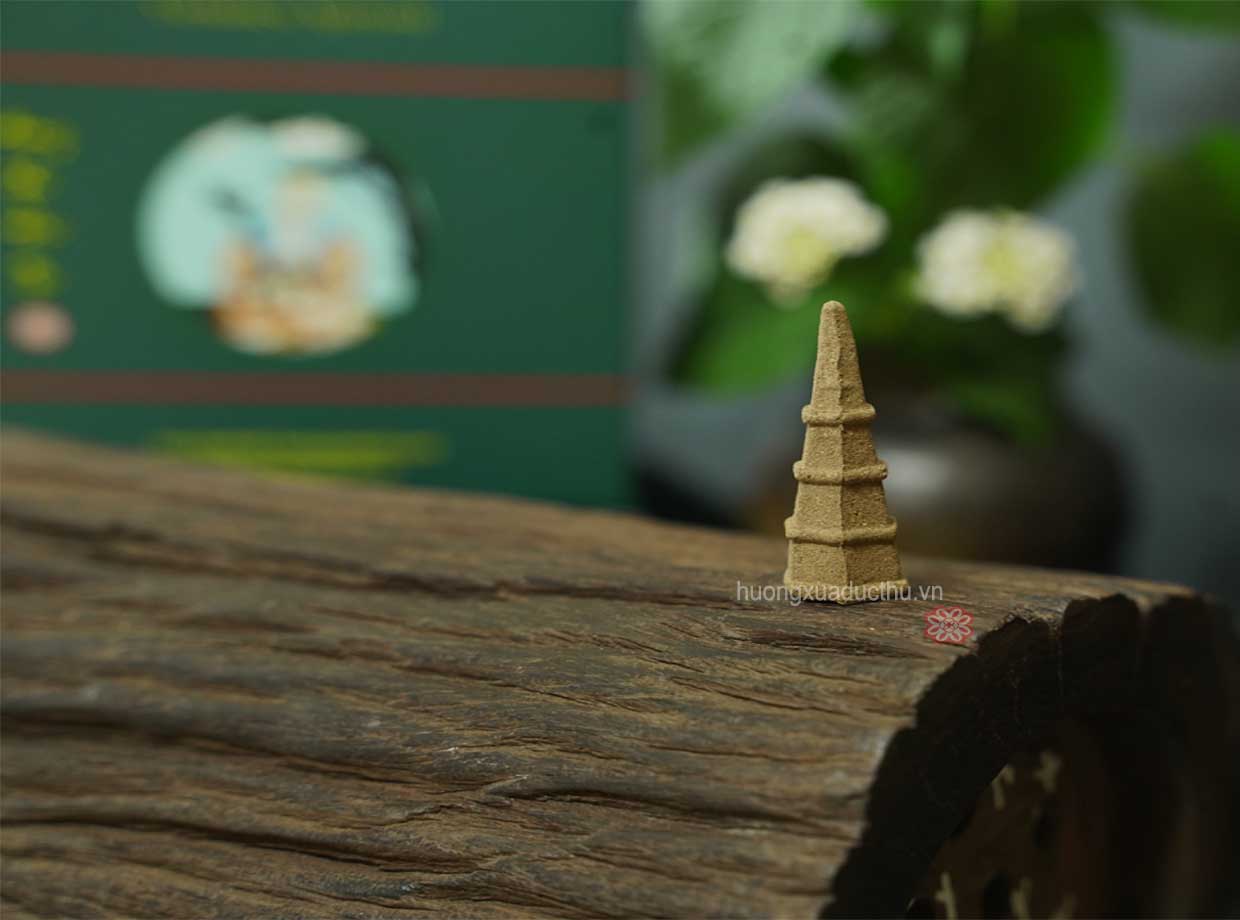Nụ Trầm Hương - Nhang Nụ Trầm Loại Đặc Biệt Nụ trầm hương được sản xuất từ Hương Xưa Đức Thụ thực chất là gỗ trầm hương mảnh trầm hương được xay nhuyễn thành bột mịn rồi được pha trộn với keo của cây bời lời rồi được nhào nặn thành hình chóp trụ, búp sen, nhang trầm nụ, lỗ nhỏ ở giữa đóng vai trò thông khí cho trầm dễ cháy hơn.