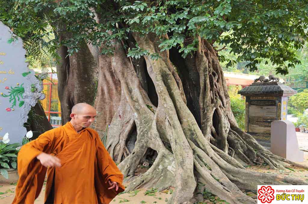 Quả cầu được đặt trên một bệ đá có tiết diện vuông, nặng 4 tấn, bên ngoài là bể nước hình bát giác với tám bồn hình cánh hoa bao quanh tượng trưng cho bát chính đạo. Quả cầu đã được trung tâm Sách kỉ lục Việt Nam xác định: Quả cầu Như ý lớn nhất Việt Nam. Trong La Hán đường có bộ tượng gỗ mười tám vị La Hán được chạm khắc tinh tế, đủ các dáng điệu tư thế và lai lịch của từng vị. Phía bên trái tháp thiền viện có một cây đa cổ thụ bảy trăm năm tuổi, cành lá sum xuê tươi tốt.