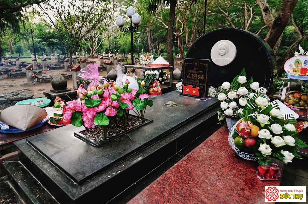 Võ Thị Sáu - Mộ Cô Võ Thị Sáu - Mộ Võ Thị Sáu Côn Đảo bạn nên chuẩn bị thêm đồ để viếng mộ của các anh hùng liệt sĩ tại nghĩa trang Hàng Dương. Bên cạnh đó, bạn nên chú ý để ngửa nón lá và đặt tất cả đồ cúng vào đó. Sau đó đặt bộ đồ lễ lên mộ cô Võ Thị Sáu. Một số điều lưu ý trong quá trình hành lễ Khi viếng mộ Côn Đảo Võ Thị Sáu, bạn cần phải chú ý đến một số điều để không làm ảnh hưởng. Và một trong những điều đó là: Nghĩa trang Hàng Dương là nơi tâm linh, bạn nên chọn những trang phục kín đáo và lịch sự.